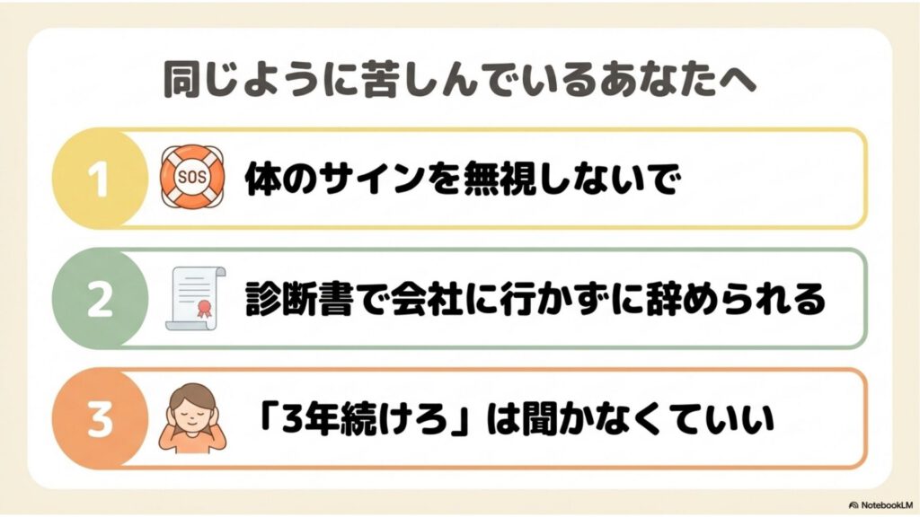 「3年続けろ」という声は、聞かなくていい。その3年であなたが壊れてしまったら、取り返しがつかないから。