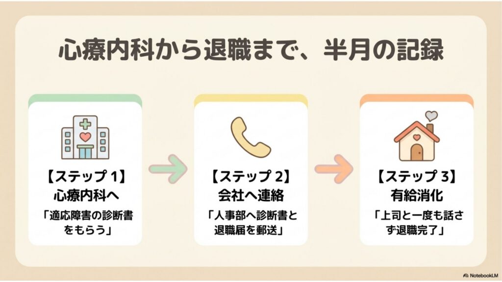 もし今、「辞めたいけど会社に行くのが怖い」と思っている人がいたら、伝えたいです。診断書さえあれば、あなたが会社と直接やりとりする必要は、ほとんどありません。
