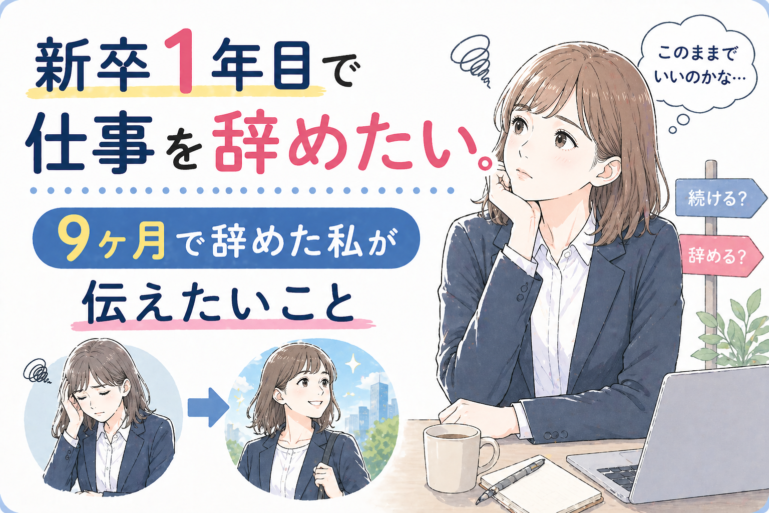 そんなふうに思っていませんか。私もそうでした。入社して半年が過ぎた頃から、毎朝涙が出るようになって、「でも新卒1年目で辞めるなんて」という言葉が頭から離れなかった。