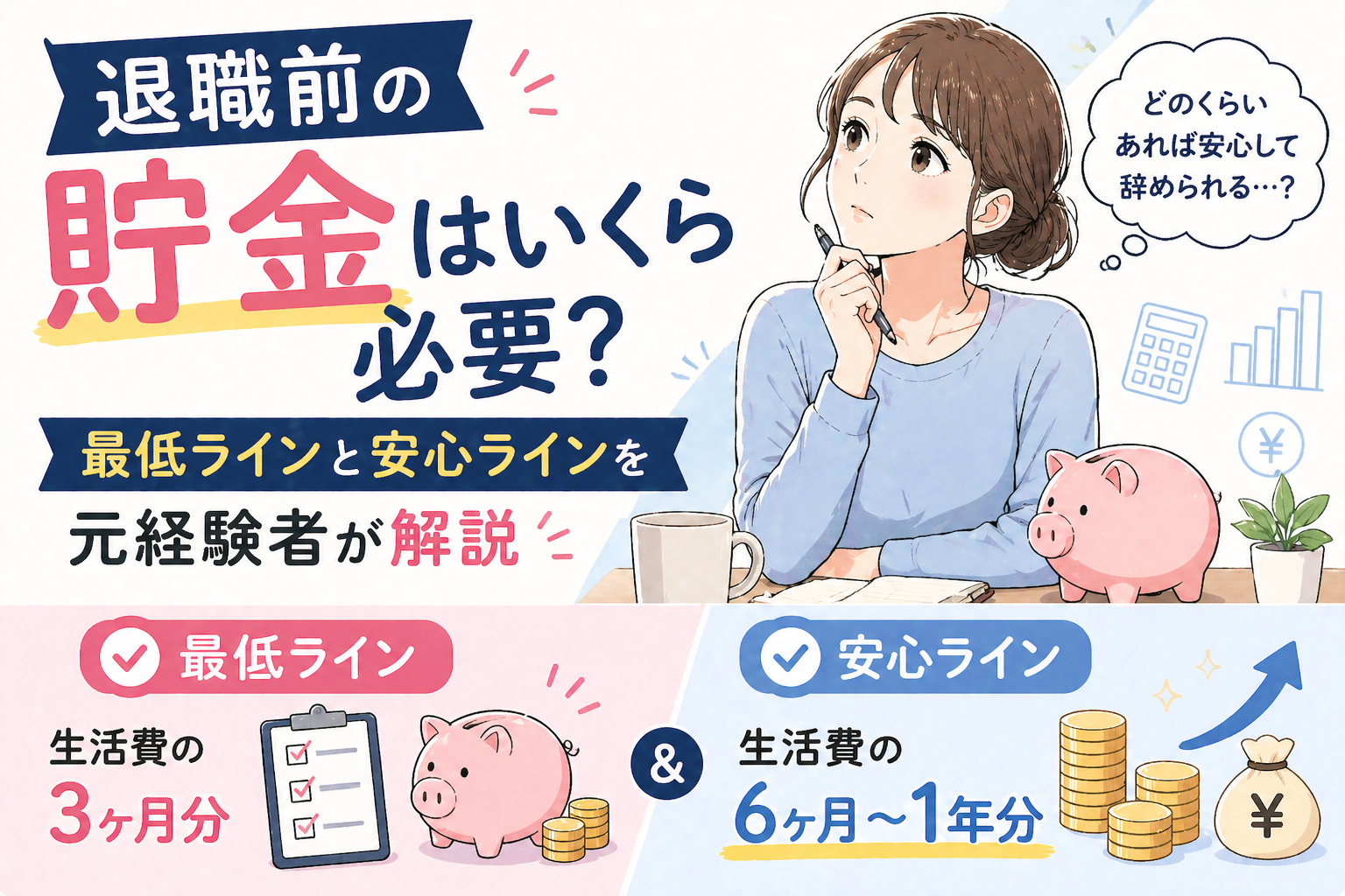 この記事では、退職前に「いくら貯金しておけばいいか」を、数字で具体的に解説します。最低ラインと安心ラインを分けて整理するので、自分に当てはめて計算してみてください。お金の不安を数字に変えると、見通しが立って少し楽になりますよ。